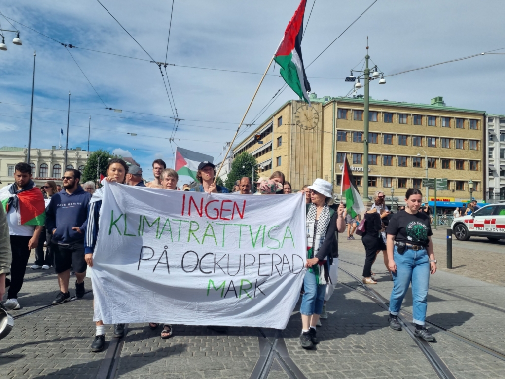 Genom politisk påverkan, manifestationer, debattartiklar har vi arbetat för att lyfta hur militarisering, krig och företagsmakt hänger ihop med frågor om klimat, rättvisa och demokrati. Genom Friends of the Earth Internationals internationalist solidarity system har vi också deltagit i flera olika solidaritetsaktioner, många för Palestina.