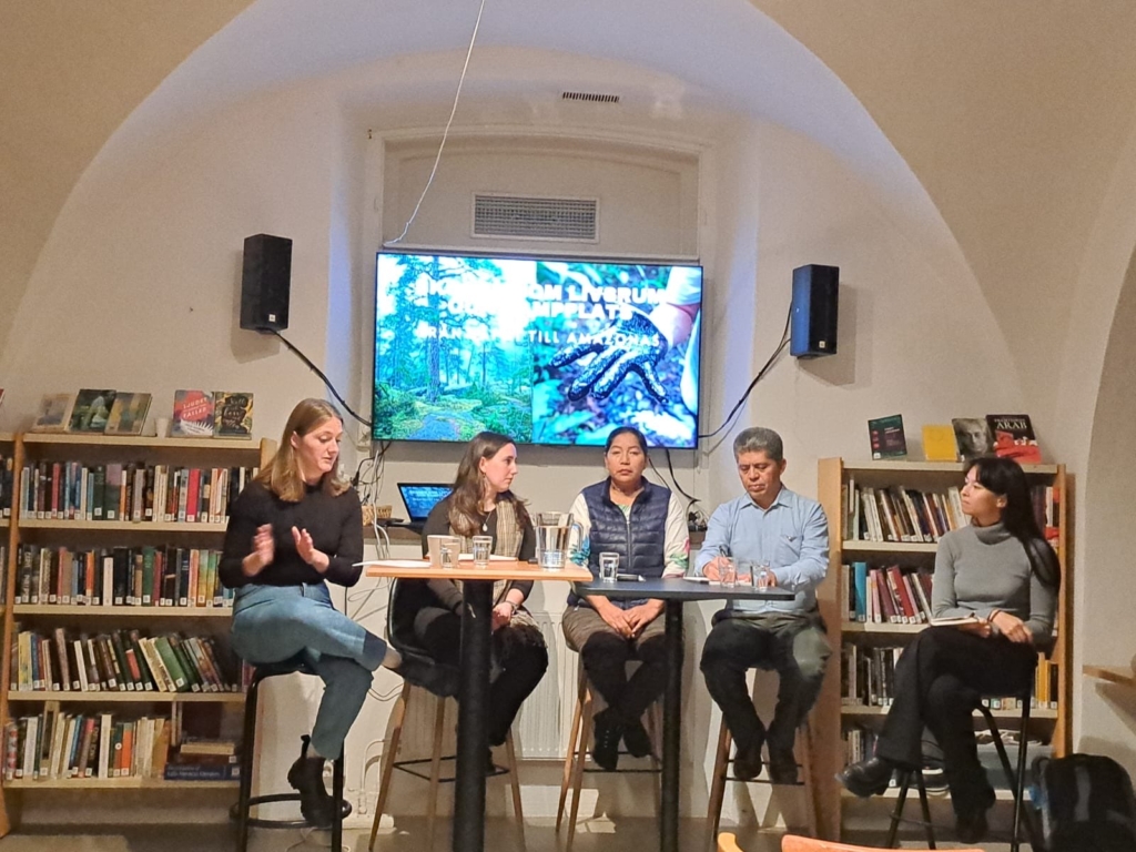 Under hösten besökte Pablo och Maritza från vår partnerorganisation UDAPT Sverige för att sprida kunskap om Chevrons omfattande övergrepp av människor och natur i Ecuador. Pablo och Maritza deltog bland annat i två panelsamtal: ett om urfolks rättigheter och skogen som livsrum och kampplats tillsammans med representanter från Amnesty Sápmi och Latinamerikagrupperna och ett tillsammans med aktivisten Jenkins Osadolor från Nigeria om korruption, olja och företagsmakt. Under besöket genomförde de också både intervjuer och politikermöten.